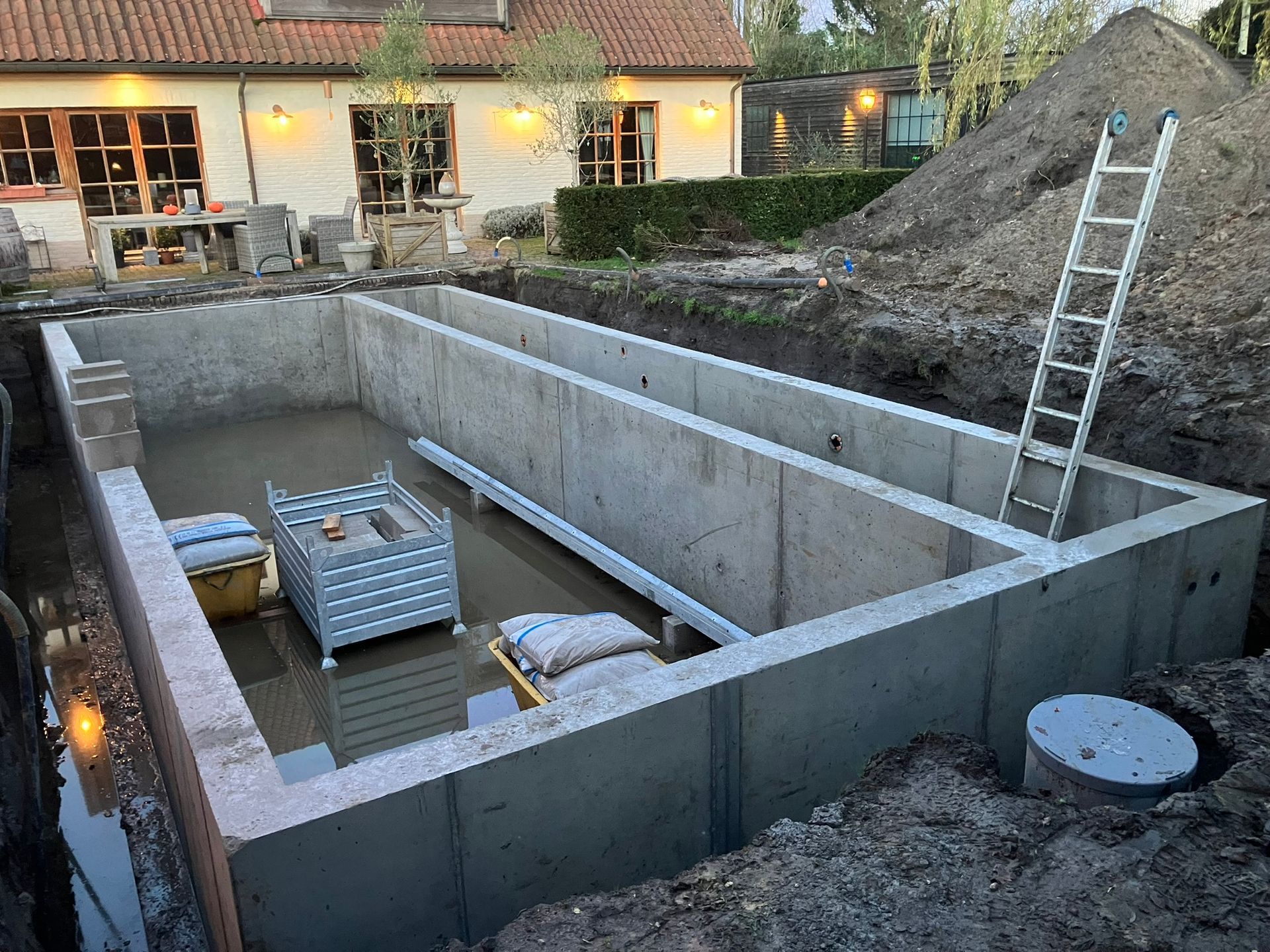 Wij zijn gespecialiseerd in het plaatsen van kelders in beton voor woningbouw en zwembaden of zwemvijvers.