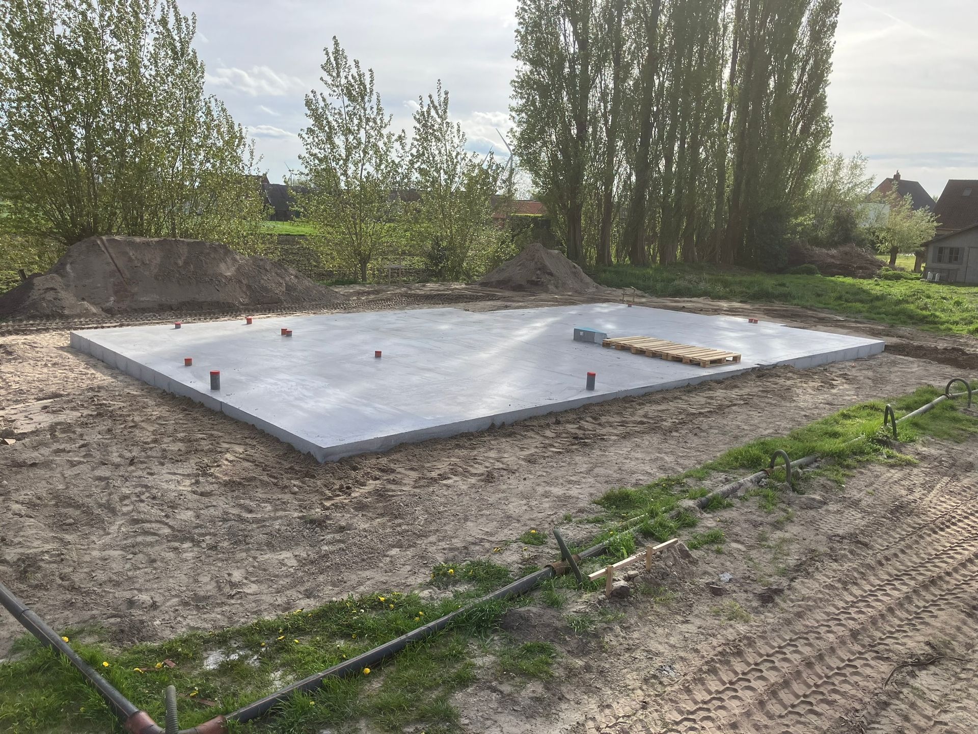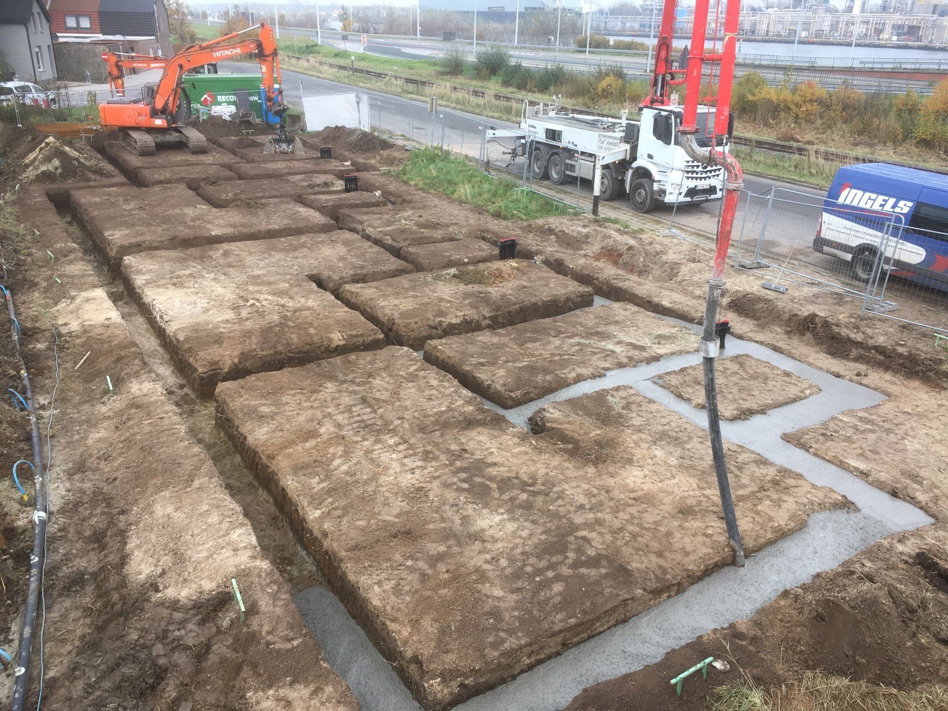 Dankzij ons uitgebreid machinepark bieden wij een totaalpakket aan, vanaf het bouwrijp maken van het terrein tot het gieten van de vloerplaat. Ook diverse omgevingswerken behoren tot onze activiteiten zoals het plaatsen van keerwanden en het uitvoeren van allerlei grondwerken.